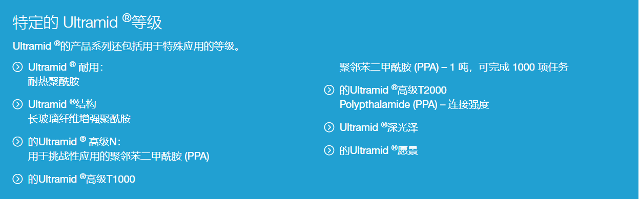 Ultramid ?的產(chǎn)品系列還包括用于特殊應(yīng)用的等級。